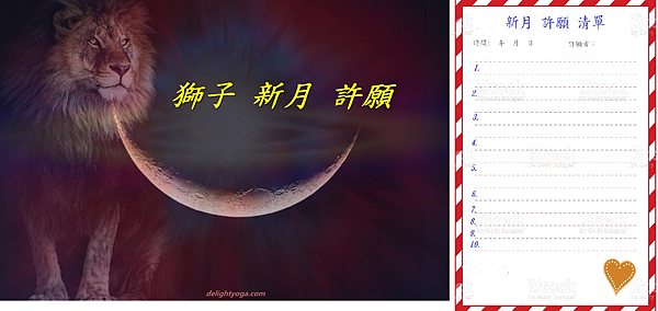 逢新月獅子,許願的方向當然是好好照顧我們的心和心臟,平日坐站宜挺直胸部;運用呼吸和適度的運動讓心臟有氧;放鬆上背部和雙肩的緊繃與緊張。